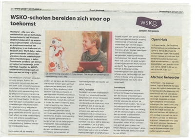 De krant Groot Westland heeft een artikel geplaatst over de aandacht van WSKO-scholen voor het onderwijs van de toekomst.