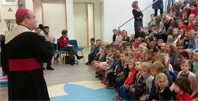 Één van de leerkrachten heeft een gedicht voorgedragen over de Ruimte van Rust en een kinderkoor heeft het lied ‘Mag ik dan bij je schuilen’ gezongen. De druppels van het water dat de bisschop gebruikt heeft zullen wel snel weg zijn, de gedachten aan rust zullen ongetwijfeld langer gevoeld blijven.